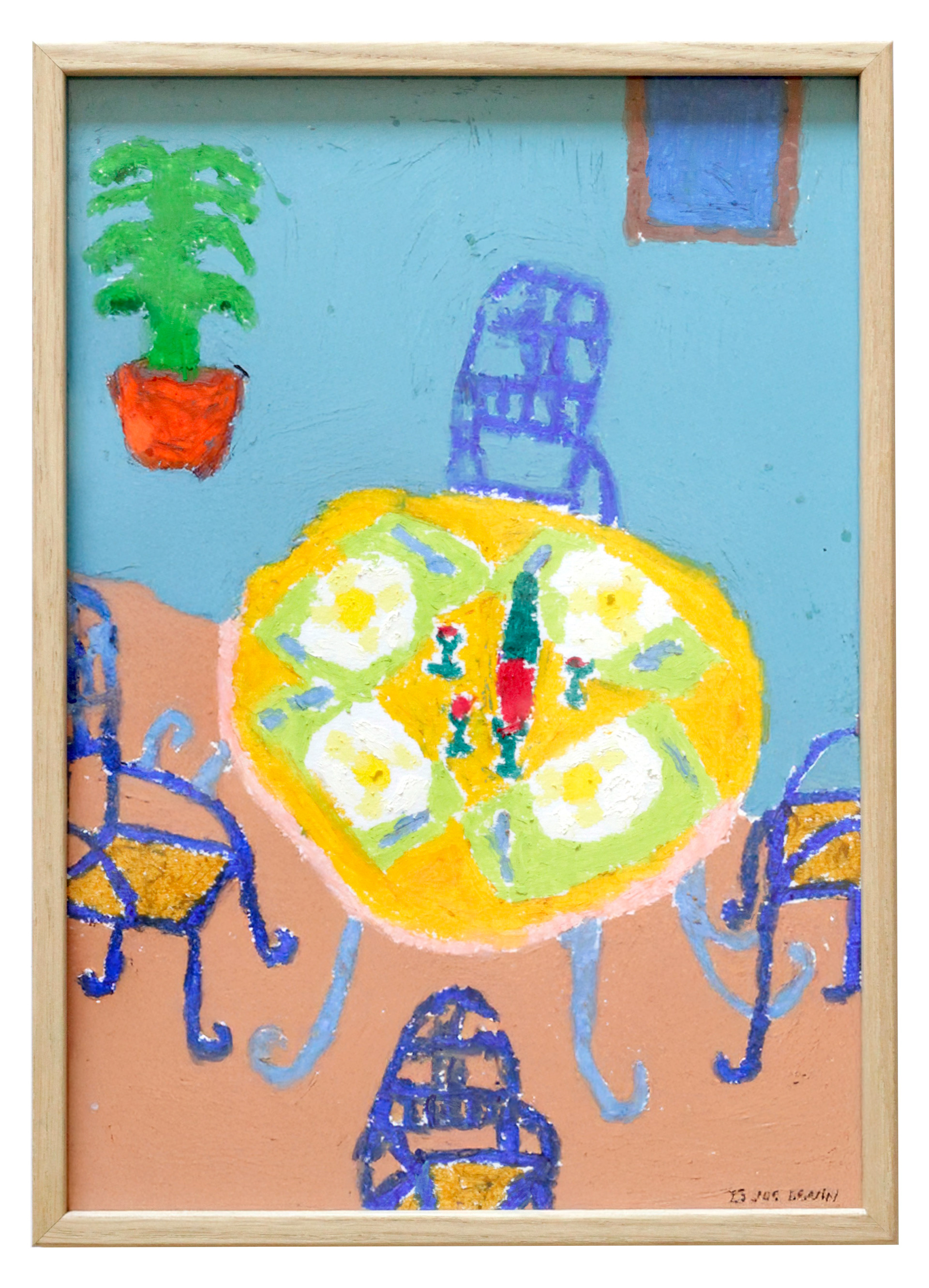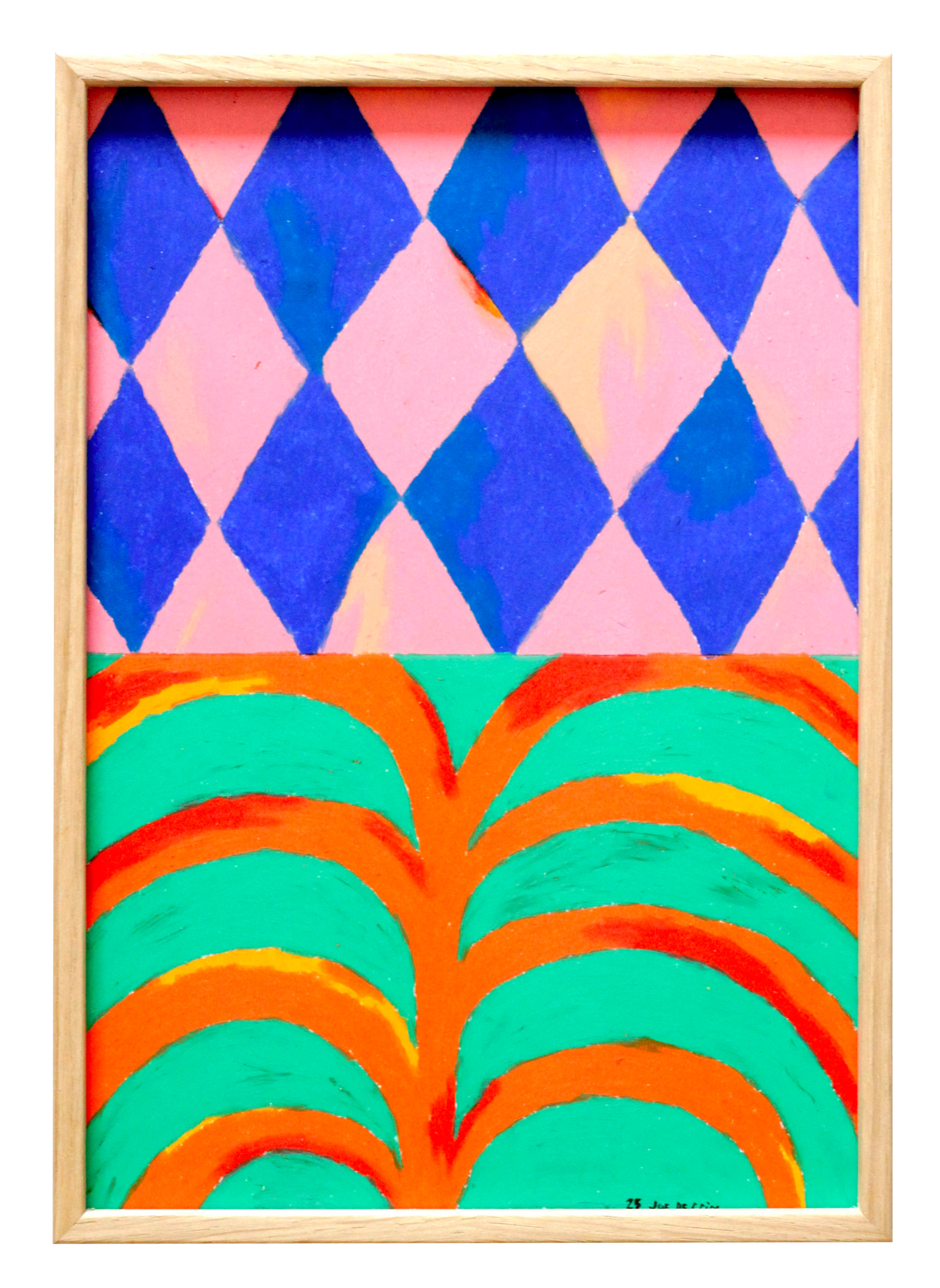 J’y trouve un espace de liberté, un terrain de jeu qui fait du bien. Je reviens parfois sur une page pour y glisser un détail, un mot. D’autres fois, je ne suis pas satisfait, alors je colle par-dessus. Le dessin déborde, traverse la page suivante. Il est expressif, vivant. Ce plaisir de dessiner sans pression, je voulais le partager. Cueillir ce qui m'entoure. Plus joyeux. Les dessins originaux sont réalisés aux pastels gras. Des Sennelier épais, très gras, qui offrent une texture riche, presque brouillonne, que j’adore. Il y a quelque chose de brut, de naïf, presque enfantin, dans le geste. Et j’aime ne pas réussir à contrôler complètement l’outil. Cueillette Estivale, c’est donc l’idée de venir cueillir dans mes carnets pour en proposer une seconde version. Ouvrir cet espace intime, et l’agrandir. Jongler entre le minuscule et le plus grand. Les doubles-pages des carnets sont imprimés en risographie, en quatre passages, pour offrir des couleurs vives et joyeuses.